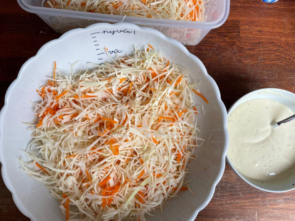 Dresink promíchejte spolu s nakrajeným zelím a nastrouhanou mrkví