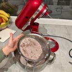 Přes cedník přidáme moučnou směs k vyšlehaným vajíčkům a zlehka promícháme. Nakonec přidáme kousky čokolády.