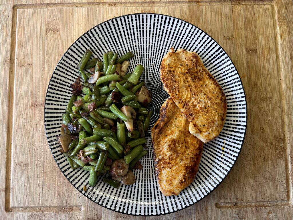 Když jsou fazolky hotové (měly by být na skus ne rozvařené), smícháme se žampiony.
