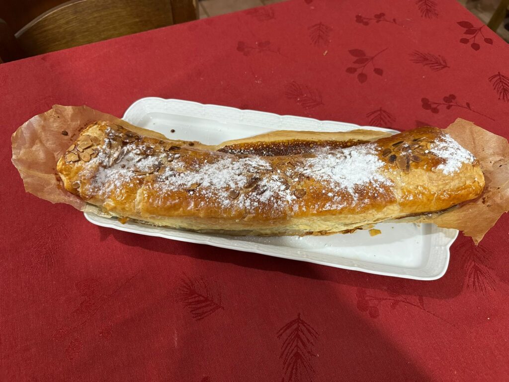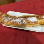 Štrůdl potřeme rozšlehaným vejcem, aby nám v troubě pěkně zezlátnul. A dáme ho péct do trouby vyhřáté na 180 stupňů na zhruba 30 až 40 minut. Pečeme, dokud nebude pěkně zlatavý. Podáváme posypaný moučkovým cukrem.