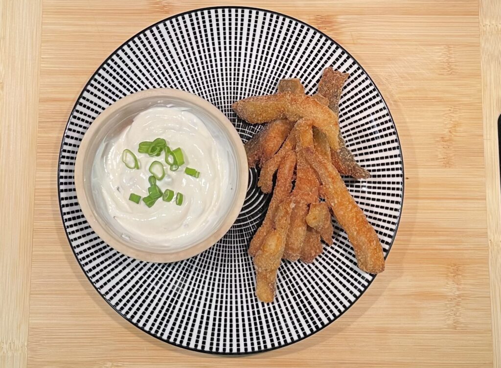Kapří filet nakrájíme na hranolky o tloušťce zhruba jeden centimetr. Nakrájené kousky v misce osolíme a přidáme šťávu z půlky citronu a dobře promícháme ve směsi. Mecháme marinovat alespoň hodinu, aby maso zkřehlo.