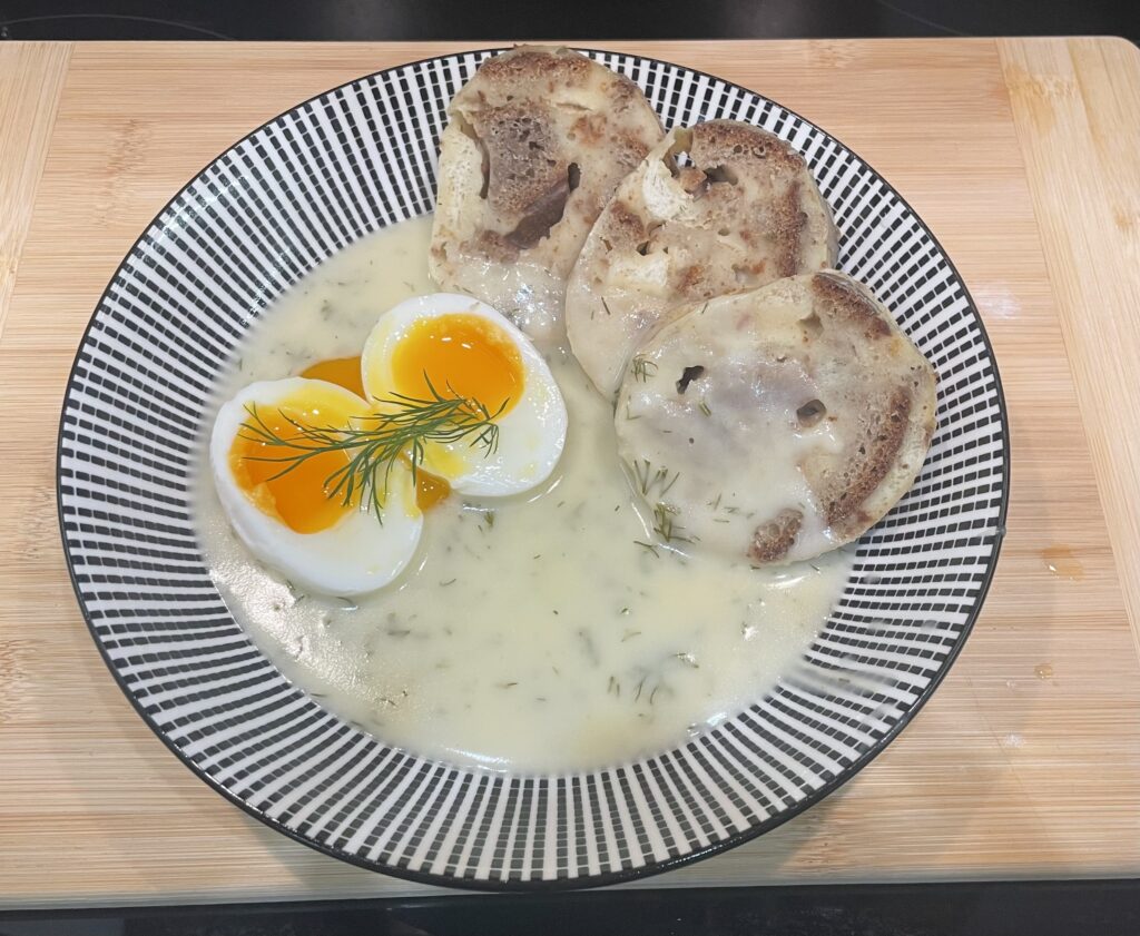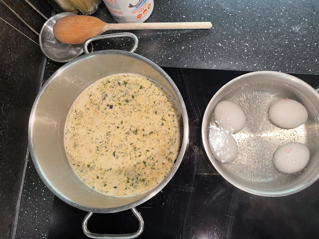 Vaříme asi 3 min a přidáme smetanu. Dochutíme solí, cukrem a octem podle sebe. Nejlepší je osolit a dát vždy lžíci octa a lžíci cukru. Ochutnat a pak postup opakovat a dle vaší chuti upravovat množství soli, cukru a octa. Když jste s chutí spokojení, můžete servírovat: koprovka je hotová.