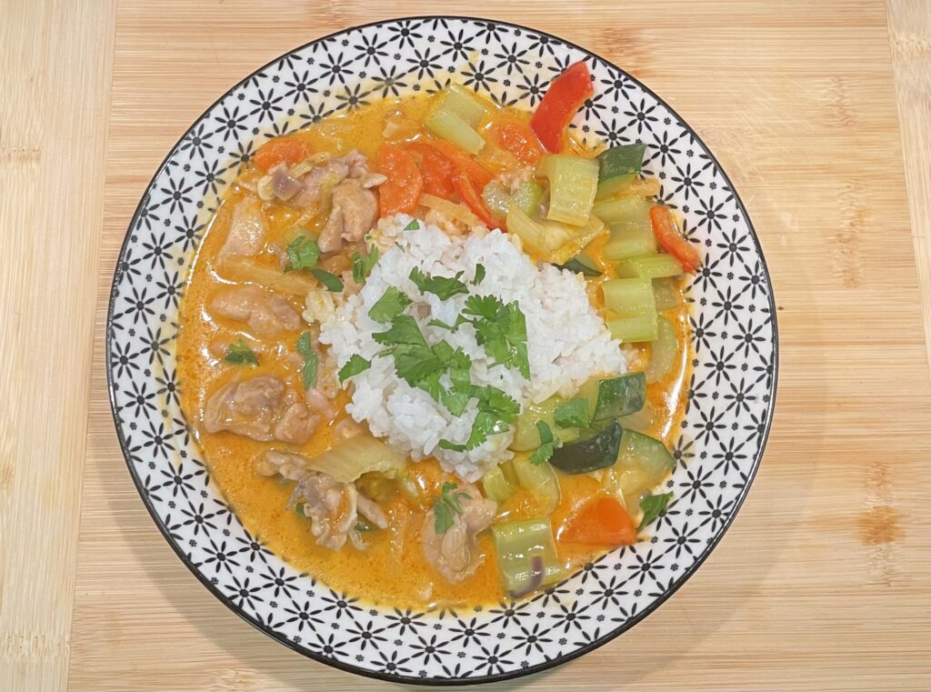 Když je vše uvařené, dochutíme rybí omáčkou a přidáme celou plechovku kokosového mléka . Můžeme přidat cukr, pokud chceme omáčku sladší. Krůtí maso na kari podáváme s rýží.