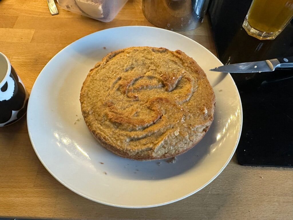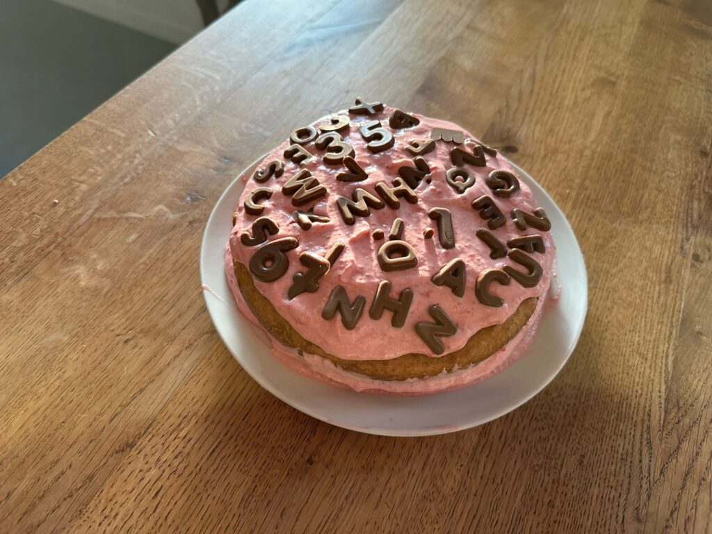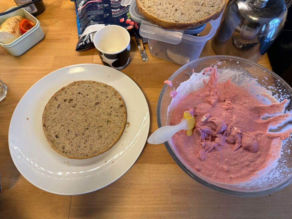 Pečeme na 180 stupňů asi 56 až 60 minut. Vychladlý korpus podélně rozpůlíme a naplníme krémem.