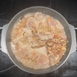 Vaříme na mírném plameni dokud maso nezměkne. Maso pak vyjmeme a houbovou omáčku umixujeme tyčovým mixérem.