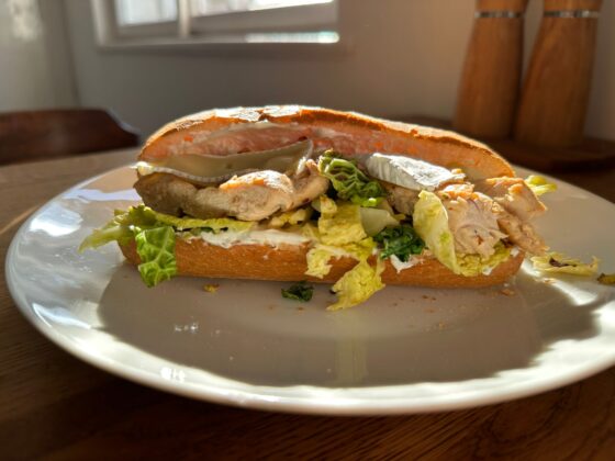 Sendvič s kuřecím, camembertem a opečenou kapustou